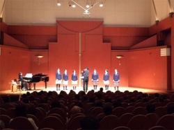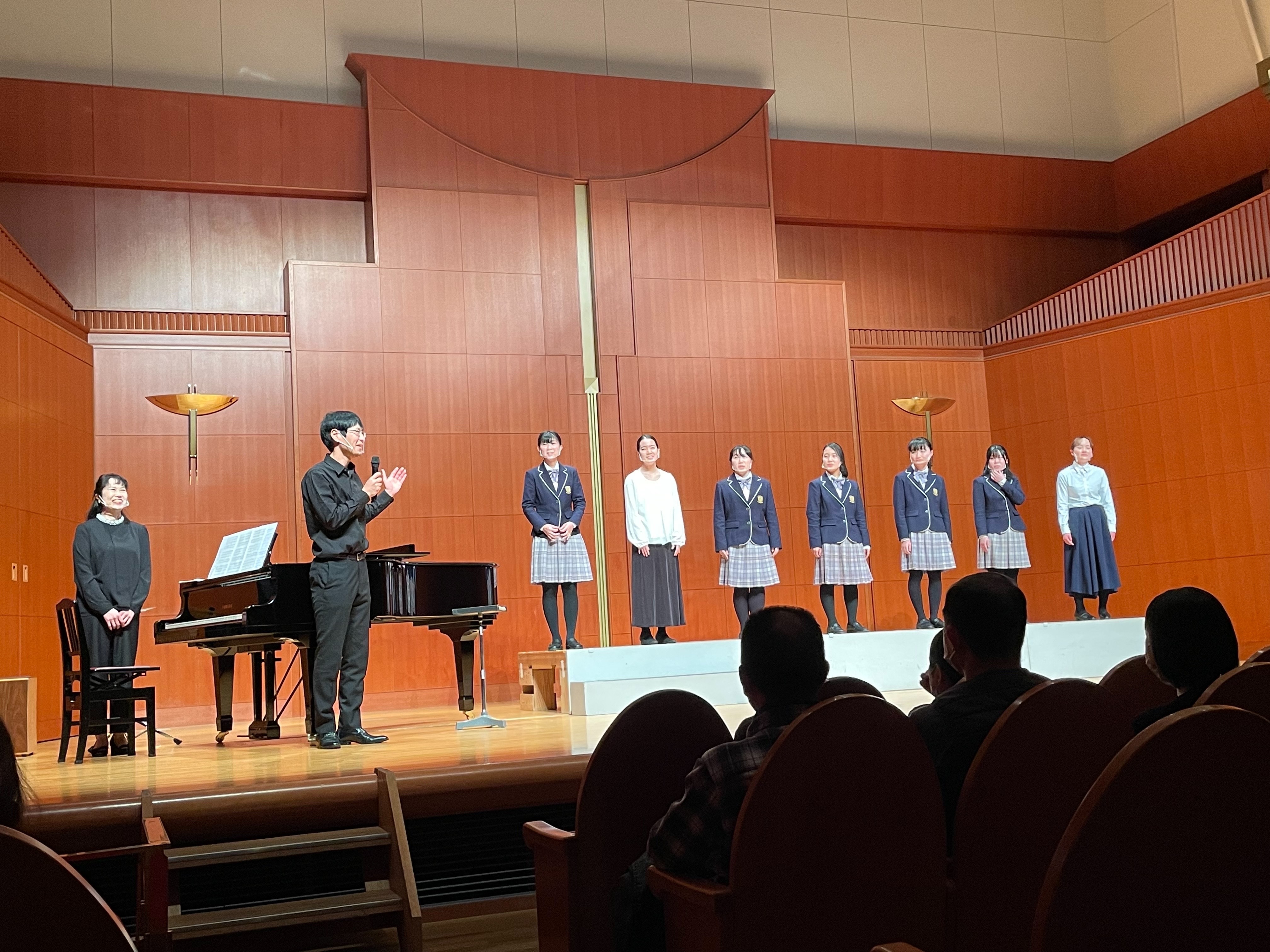 に出演させていただきました。今回はアカペラ作品2曲フォーブス作曲「アヴェマリア」と松下耕作曲の三原ヤッサ節の2曲を演奏しました。響きの美しいホールで気持ちよく演奏さて頂きました。演奏終了後多くの方から演奏についての良い評価を頂き、私たちにとって大きな自信となりました。今後ともご声援よろしくお願いします。
