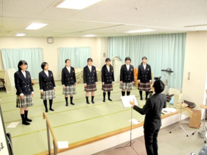 新一年生を迎えての初めての本番「花は咲く」「風になりたい」の2曲を楽しく歌わせて頂きました。