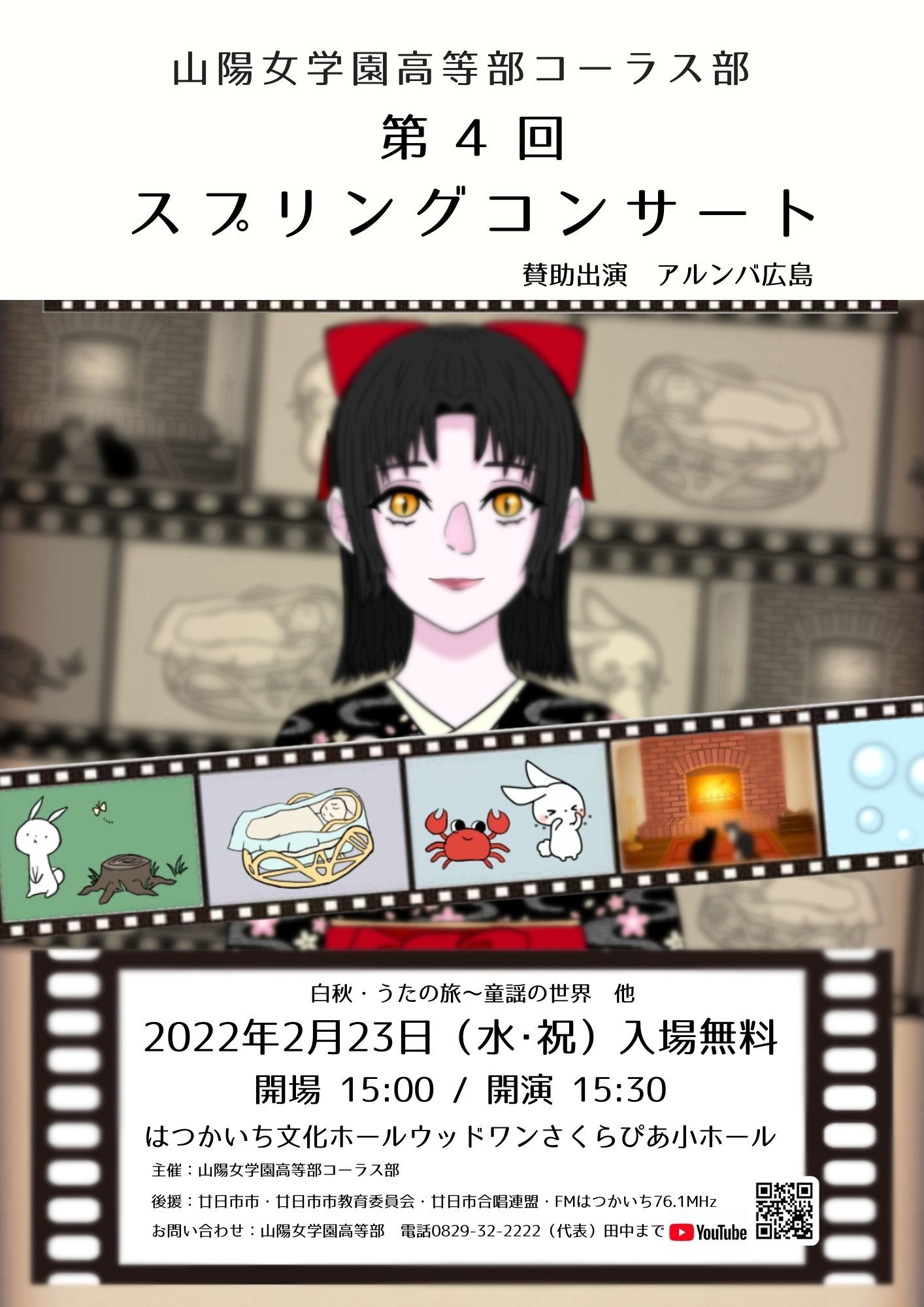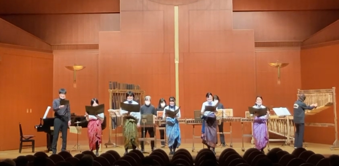 廿日市文化ホールウッドワンさくらぴあ小ホールにて、4回目のスプリングコンサートを開催しました。今年は、コロナ禍での開催となるため、コロナ感染予防対策を整えて演奏会を開催しました。今回は第2部でインドネシア民族楽器アンクロンの演奏団体「アルンバ広島」の皆様と一緒にインドネシア民謡などコーラスと打楽器のアンサンブルを演奏しました。お聞き苦しい点もあったと思いますが、感謝の気持ちを伝えられるよう精一杯演奏しました。