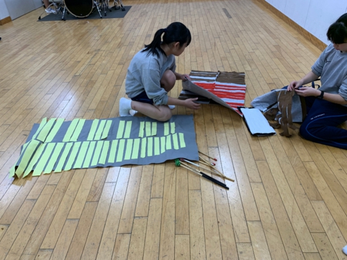パーカッションパートも自分たちで作った鍵盤で練習をしました。