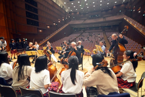 みんな緊張した顔の中、TVの中でしか見たことのない楽器の名手たちが、目の前に・・・。