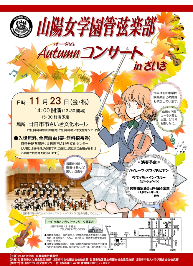 山陽女学園中等部・高等部 管弦楽部 TEL:0829-32-2222(担当:乾・佐藤)