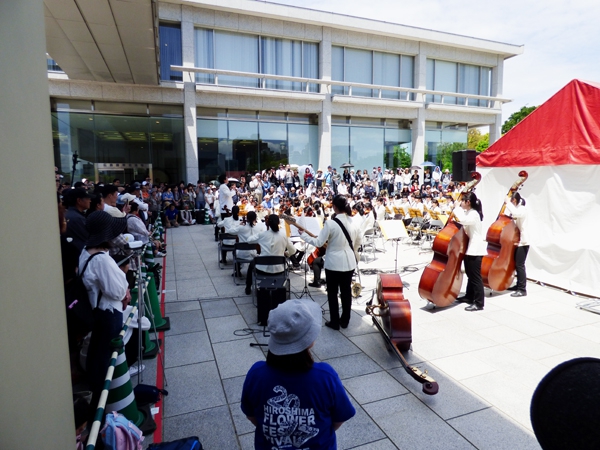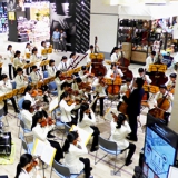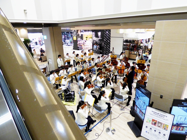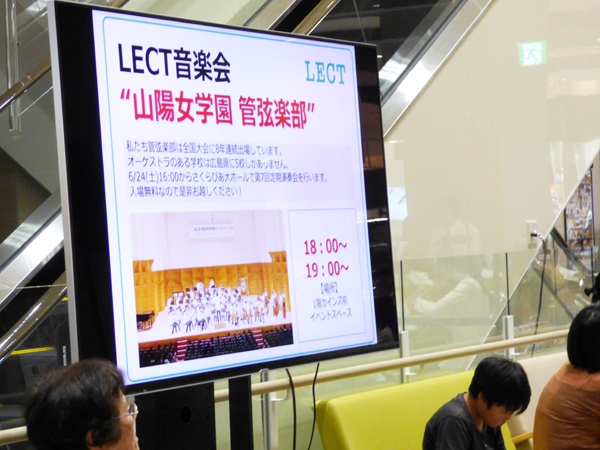 LECTは、今年4月に広島市西部にオープンした大型商業施設です。6月の金曜夜は山陽女学園の音楽系クラブが演奏会を行いました。管弦楽部はそのトップバッターでしたが、多くのお客様が足を止めて私たちの音楽を聴いてくださいました。