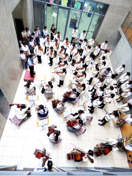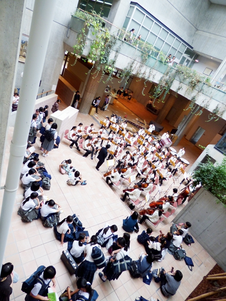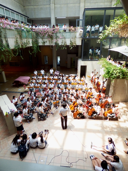 中等部・高等部合同のオープンスクールが開催されました。管弦楽部の出番は、高等部クラブ体験と、ステージでの発表!クラブ体験の後、一緒にステージにのってくれた中学生もいました。皆さん、私たちと一緒に、オケしませんか?