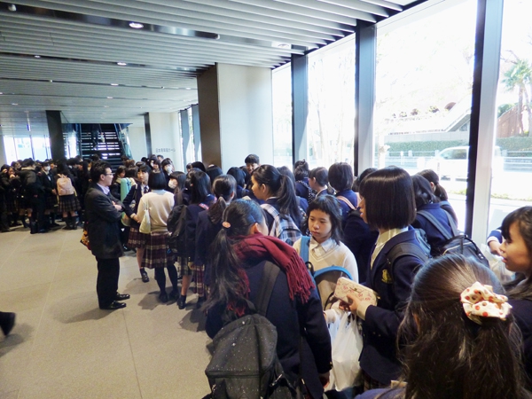 7時半に広島駅集合、その後新幹線で一路東京へ。品川駅で貸し切りバスに乗り換えて、会場となる「日本青年館ホール」へ向かいました。現地でのリハーサルはないので、他校の演奏を聴き、ホールの響きの特徴をつかみ、チューニングでイメージを共有して、本番に臨みました。