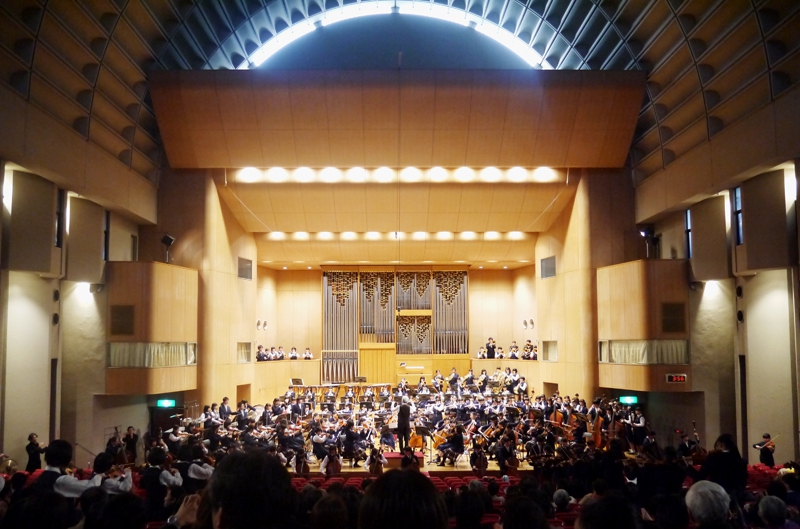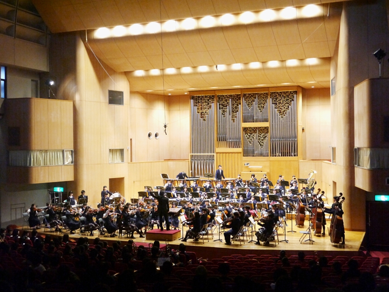 昨年に引き続き、今年もエリザベト音楽エリザベト音楽大学セシリアホールにて開催しました。この演奏会のコンセプトは「互いの音楽を聴きあうこと」。学校は違えど、同じ広島県で同じ時期にオーケストラをやっている者同士、刺激し合いました。