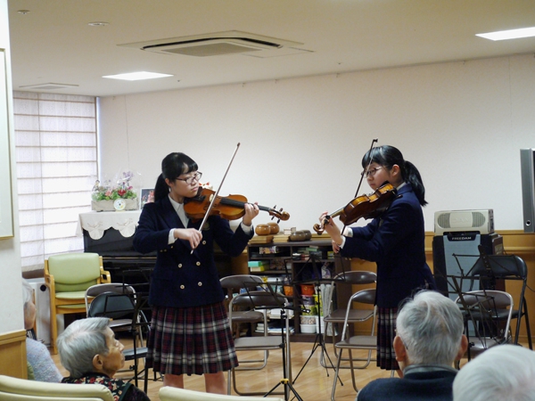 毎年、ご招待くださる「グランホームあさひ」さんに今年もおじゃましました。今年は弦楽アンサンブル!入所者の方々も手拍子や掛け声などで参加してくださり、楽しんでいただけたようでした。