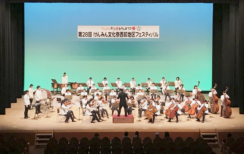 この「けんみん文化祭ひろしま 西部地区フェスティバル」は、廿日市・大竹地区の老若男女が楽器演奏や踊りなどさまざまなジャンルで日々の練習の成果を発表する大会です。普段、オーケストラ演奏とは無縁の生活をされている方々にも、私たちの演奏を聴いていただける機会となりました。