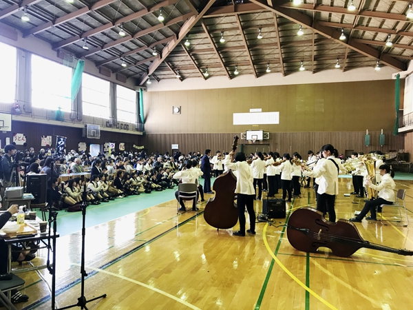 昨年に引き続き、廿日市市さいき文化ホールさんからご招待いただいて、オータムコンサートを開催しました。会場は超満員!仮設席も含めた300席がほぼ埋まり、大盛況でした。今年は特別ゲストとして、コーラス部や佐伯中学校吹奏楽部さんにもご出演いただきました。特に佐伯中学校吹奏楽部さんとは「佐伯地区校歌メドレー」などを一緒に演奏し、合同練習も含め交流を深めました。