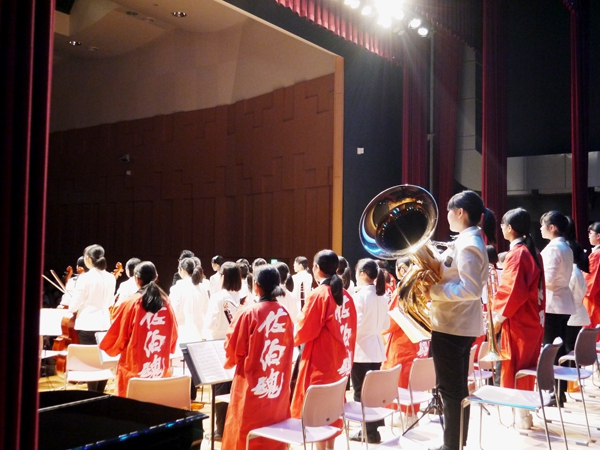 広島県内のオーケストラ(管弦楽)部が集まって演奏を披露したり、100名以上でオーケストラを編成し合同演奏を行うイベント「オーケストラフェスティバル」も今年で3回目となりました。山女オケは第9回定期演奏会でメインとなる、ドヴォルザークの交響曲第8番より第1楽章を演奏しました。また、合同オーケストラにも25名が参加し、刺激を受けました。
