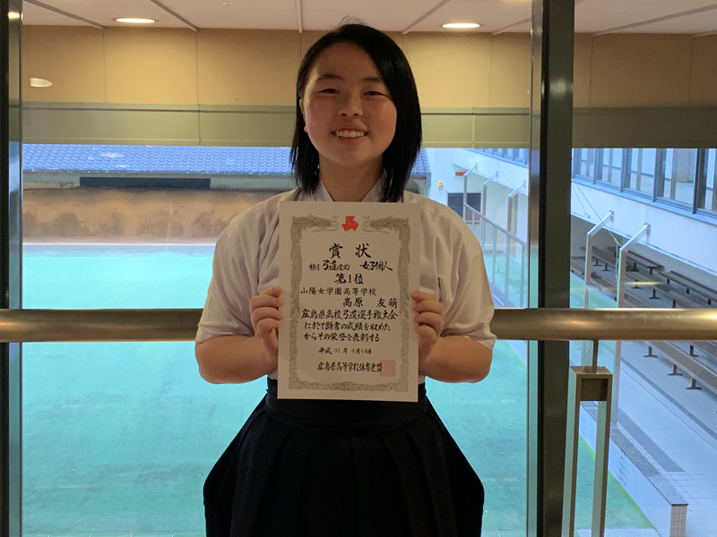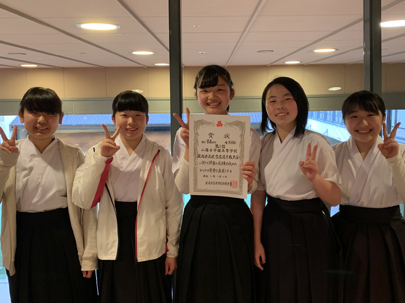 第62回広島県高等学校弓道選手権大会では、団体戦は2位、個人戦では髙原 友萌さんが優勝しました。