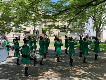 今年もフラワーフェスティバルに出場しました。3日はパレード、5日はステージ発表でした。今年はとても暑く、汗をかきながらの演奏演技でした。新1年生も加わり、新しいメンバーでのスタートをきりました。3日のパレードでの演奏演技は全部で20分程。1年生は初めての経験だったので、しんどくなる場面もありましたがみんなで力を合わせて乗り切ることができました。これからの成長が楽しみですね!