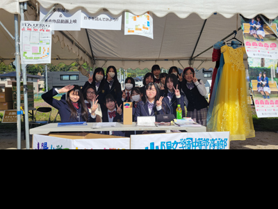 山陽女学園中等部・高等部のブースでは、衣装展示と台本読み体験を行い、地域の方と交流しました。また、発表はステージだけではなく、会場の色々なところに突然現れてお芝居とダンスを披露する、フラッシュモブのようなパフォーマンスを披露しました。