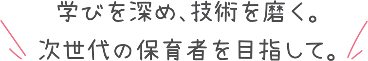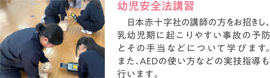 みなさんこども教育コースで保健実習での経験などを通して、保育の知識や技術を身につけてください。
