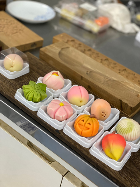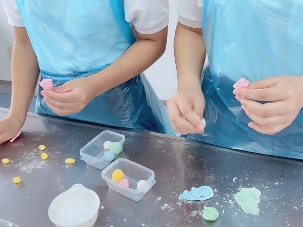 繊細な作業で作り出される芸術品のようなお菓子。丁寧に指導していただき、きれいな練り切りを作ることができました。