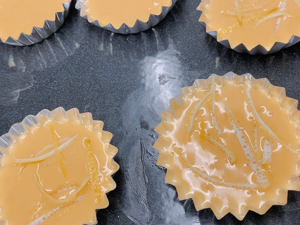 フィナンシェには香ばしい焦がしバターを作り、生地に加えました。マドレーヌにはレモンの皮をアレンジとして加え、