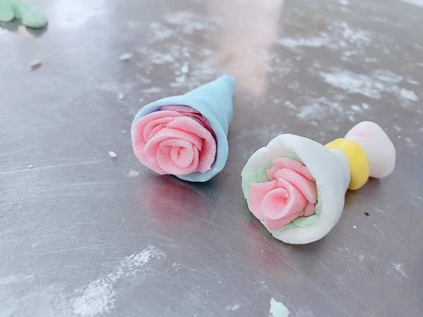 細かい作業に苦戦している様子でしたが、かわいいバラやブーケ―を作ることができていました。