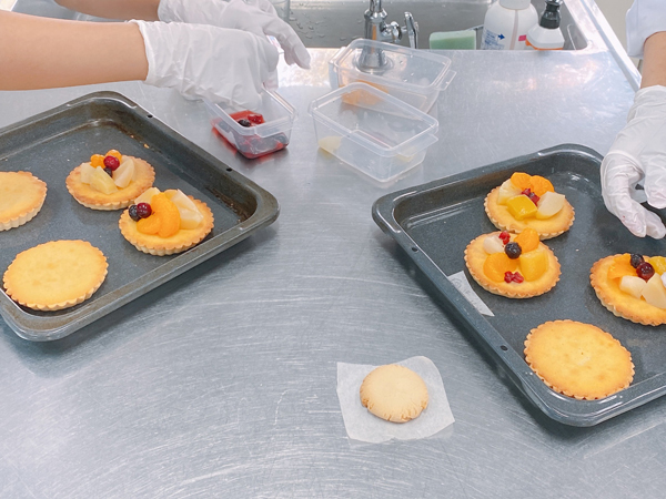 1年生は、【カスタードタルト、エクレア、ルクセンハウス】を提供しました。班ごとに製作品を決め、試作・検討を行い、この日を迎えました。