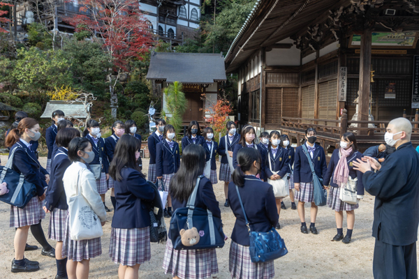 大聖院の境内では、住職の方のわかりやすい説明を聞きながら、見学することができました。さらに、テーブルマナー講習の実践では、