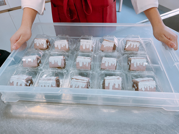 サクサクな生地は食べ進めるとガナッシュと混ざり合い、しっとりとした食感となります。参加者の皆さんに笑顔で持って帰ってもらうことができました。
