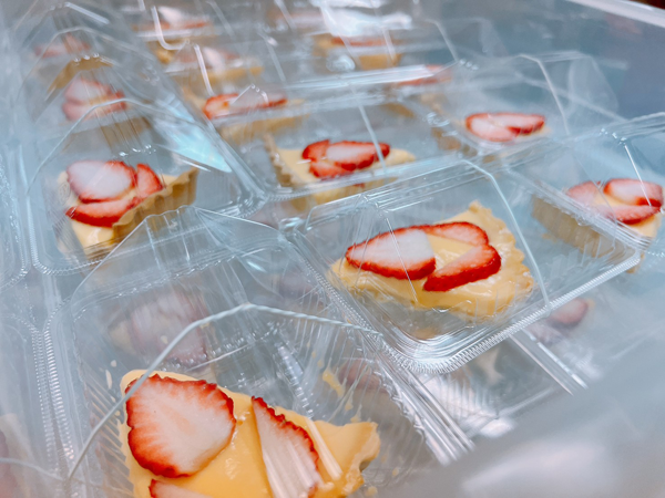 上にフルーツを盛り付けました。おいしそうに出来上がり、参加してくれた皆さんが笑顔で持って帰ってくださったので、嬉しかったです。