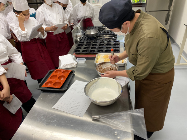 生地の作り方も学校で行う作り方とは違い、プロパティシエの技術を経験させていただきました。