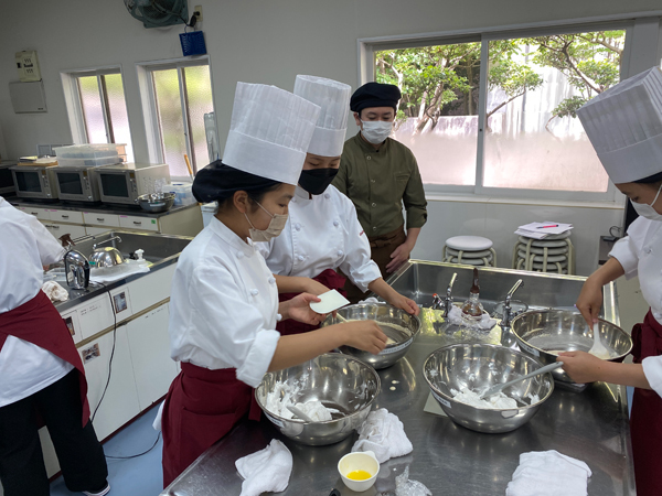 実技指導の際には、「ただのお菓子」としてではなく、「販売する商品」としてのお菓子にするためのコツや、