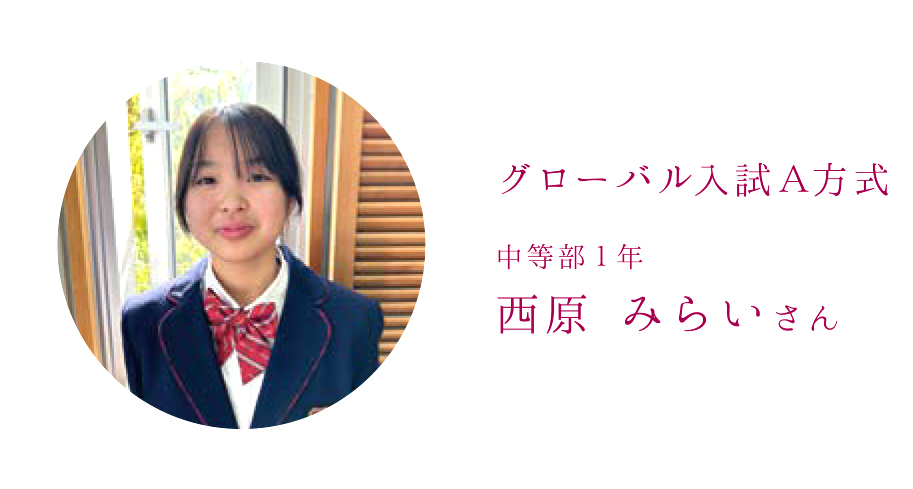 -幼稚園のときに授業の一環で来てくれた山陽女学園のお姉さんにあこがれていました。中学生になったら、私も同じ学校に通いたいと思ったから受験しました。
