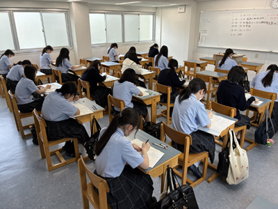 2年生は、ベネッセの「実力診断テスト」を受験しました。この模擬試験は、高校2年生の生徒を対象とした学習進捗状況を測定するものです。国語、数学、英語の3教科を対象とし、それぞれの教科の学力や到達レベルを把握できます。試験結果が帰ってきたらぜひ、苦手分野の対策や学習方法の見直しに役立ててもらいたいです。
