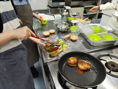サバ缶と豆腐をこねて、サバのハンバーガーのできあがり!