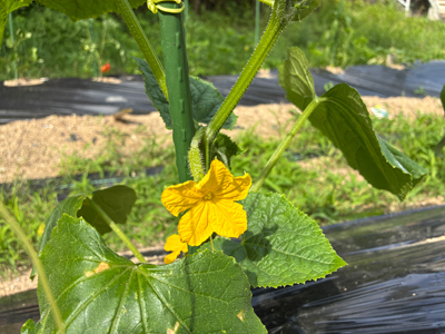 6月初めに植え付けをした、キュウリに花が咲き始めました。