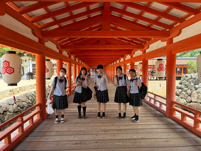 7/9(水)に全学年で宮島研修へ行きました。もみじ饅頭の手焼き体験、厳島神社拝観、水族館見学、自由散策、充実した行程をそれぞれで楽しんでいたようです。また、日頃あまり話をしない友達とも新たな交流を持てたようで、満足の面持ちで帰路についた様子が印象的でした。暑かったけど、楽しかったね。お疲れ様!
