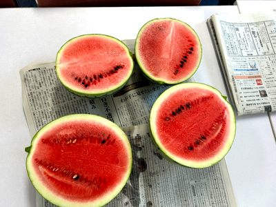 本日ついに、リアライズサポーターたちによる、畑の収穫作業が行われました。数週間前まで小さかったスイカの実も、ラグビーボールのように大きくなっていました。収穫の後は、みんなで実食しました。想像よりも甘く、真っ赤なスイカに、みんなとても喜んでいました。