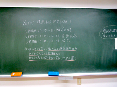 今週からいよいよ、後期単位認定試験が始まりました。レポート、スクーリングと今までに学習したことを思い出しながら、各自一生懸命取り組んでいることと思います。今年度も残すところ3カ月。悔いのないよう力を出し切って、次年度につなげてほしいです。