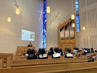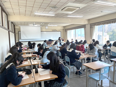 先日、2年生は高大連携講座のため、広島女学院大学に行きました。今回は、児童教育、食生活、被服デザインなど様々な分野の中から、自分が気になる講座を選び、受講しました。講座を受け、自分の進路について、さらに深く考えるきっかけになったのではないかと思います。ぜひ、今後の進路決定に役立ててほしいと思います。