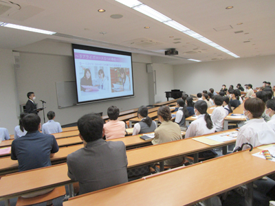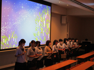 7月10日、今年度第1回目のオープンスクールを開催しました。早い時期にもかかわらず、多くの生徒・保護者の皆さまに出席いただきました。ありがとうございました。今回のオープンスクールは、生徒と教員が一緒になってリアライズコースの魅力を伝えようという思いで企画しました。説明会は、生徒によるハンドベル合奏から始まり、学校長挨拶、教員による学校紹介、今年4月に入学してきた1年生の近況報告と盛りだくさんの内容でした。後半は、5グループに分かれ、生徒が校舎内の案内をしました。次回は、9月23日(木・祝)に予定しています。ぜひご参加ください。