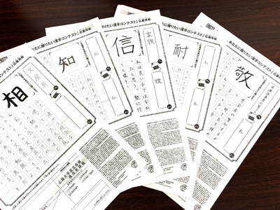 「国語総合」、「国語演習」の授業の一環として、「第9回 今、あなたに送りたい漢字コンテスト」の応募に取り組みました。このコンテストは、家族や恋人、友人や恩人、そして自分自身にあてて、日頃は言えない素直な気持ちを、漢字一字に託して、メッセージを添えて表現するものです。どの作品にも、丁寧に書かれた漢字と素敵なエピソードが添えられていました。日頃から、感謝する素直な心を持つよう願っています。