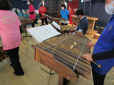 ガンバンと呼ばれる竹琴で構成する演奏形態です。