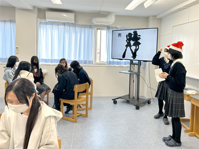 1・2年生で、リアライズサポーター主催のクリスマス会をおこないました。生徒たちによるミュージックベルの演奏や、イントロクイズなどのゲーム、ビンゴなどをおこないました。最後には、生徒一人ひとりが用意したプレゼントを、「きよしこの夜」の演奏に合わせて交換し、とても盛り上がりました。この日のために、一生懸命準備や練習を重ねてきたリアライズサポーターのみなさん、お疲れさまでした。今年最後の活動でしたが、大成功に終わり、とても嬉しく思います。来年もリアサポの活動を通して、いろいろな経験をしていってほしいと思います。