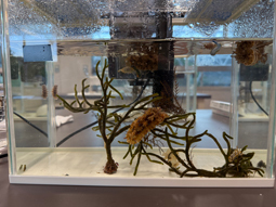現在、理科実験室の水槽にはアオウミウシ・シロウミウシ・ミヤコウミウシ・ヒラミルミドリガイという4種類のウミウシたちが住んでいます。彼らの手を借りてウミウシの光に対しての走性実験を行っているのですが、予想外の結果が出て頭を悩ませ中です。予想に至るまでの考えが間違っていた可能性もあり、しっかり考察した上でさらに実験を進めていきたいと思います。