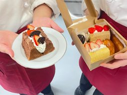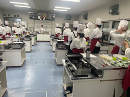 本日はパティシエコース2年生にとって、今年度最後の製菓実習でした。1年間の集大成として、フィナンシェ、マドレーヌ、スノーボールクッキー、シフォンケーキを作成しました。2年間の積み重ねにより、作業の流れにも慣れ、自信をもって取り組む姿が多く見られました。その一方で、慣れが出てきたからこそ、思うようにいかない場面や周囲との関わりの中で、さまざまな思いを抱くこともあったのではないかと思います。実習は、技術を高める場であると同時に、自分自身と向き合う時間でもあります。困っている仲間に気づけたか、自分から動けたか、前向きな声かけができたか。一人ひとりがこの2年間を振り返り、次の目標へつなげてほしいと願っています。今年度は、ANAクラウンプラザホテル広島とのコラボレーション企画や、食物検定準1級への挑戦など、自分たちで考え、形にする活動にも多く取り組みました。次年度は国家試験、食物検定1級という大きな目標に向かいます。これまで培ってきた技術と集中力に加え、「自らを省みて成長する力」を大切にしながら、さらに一歩前へ進んでくれることを期待しています。