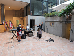 GW中、多くのクラブがフラワーフェスティバル等のイベントに出演します。軽音楽同好会も地元のお祭りのステージに出演予定でしたが、雨により残念ながら中止になってしまいました。せっかく一生懸命練習をしたので、お昼休憩に校内で発表を行うことにしました。出演が叶わなかった無念を、観客を楽しませることで晴らして欲しいと思います。