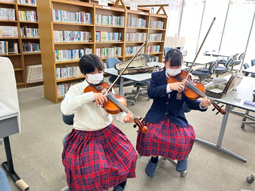 本日は個性輝き学習の日です。1年生のヴァイオリンの教室にお邪魔しました。指の位置や弦の弾き方などを2人ペアで確認しあっていました。2月の学習発表会に向けてたくさん練習を頑張ってほしいです。良い演奏を期待しています。