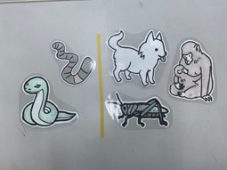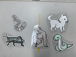 中学1年生の理科では、生物のなかま分けについて学習します。先日の授業内では「なかま分けのルールを自分で設定して、5種類の動物をグループ分けしよう」という活動を行いました。皆さんならどのような分け方を考えますか?生徒たちは写真2・3枚目のようなグループに分けました。一体、どのような条件で分けたのでしょうか?生徒たちは、「2つに分けようとすると、中間的な性質をもつものが現れる生物学の難しさ」や「色々な観点で分けること自体が学問になっていること」に気が付いたようです。これからも、学問の楽しさや難しさに触れながら知識を増やしていってほしいと思います。