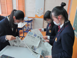 今年度、本校はNIE実践指定校です。情報活用能力育成を目的とし、新聞を活用していきます。今まで自分から新聞に手を伸ばすことがなかった生徒にも、これを機会に世の中の動きに目を向けてもらいたいです。