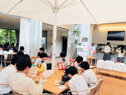 お昼休みのカフェテラスをのぞいてみました。カフェのごはんを囲み、楽しくランチタイムを過ごしていました。カフェのおすすめ