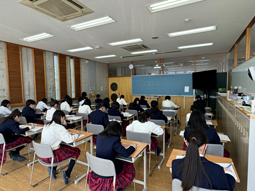 今日は1校時目から学力向上テストがあり、朝からテストに向けて先生に質問に来る生徒も多かったです。テスト後にもしっかり授業を受けている様子が印象的でした。明日からも授業や部活動など、頑張ってくださいね。