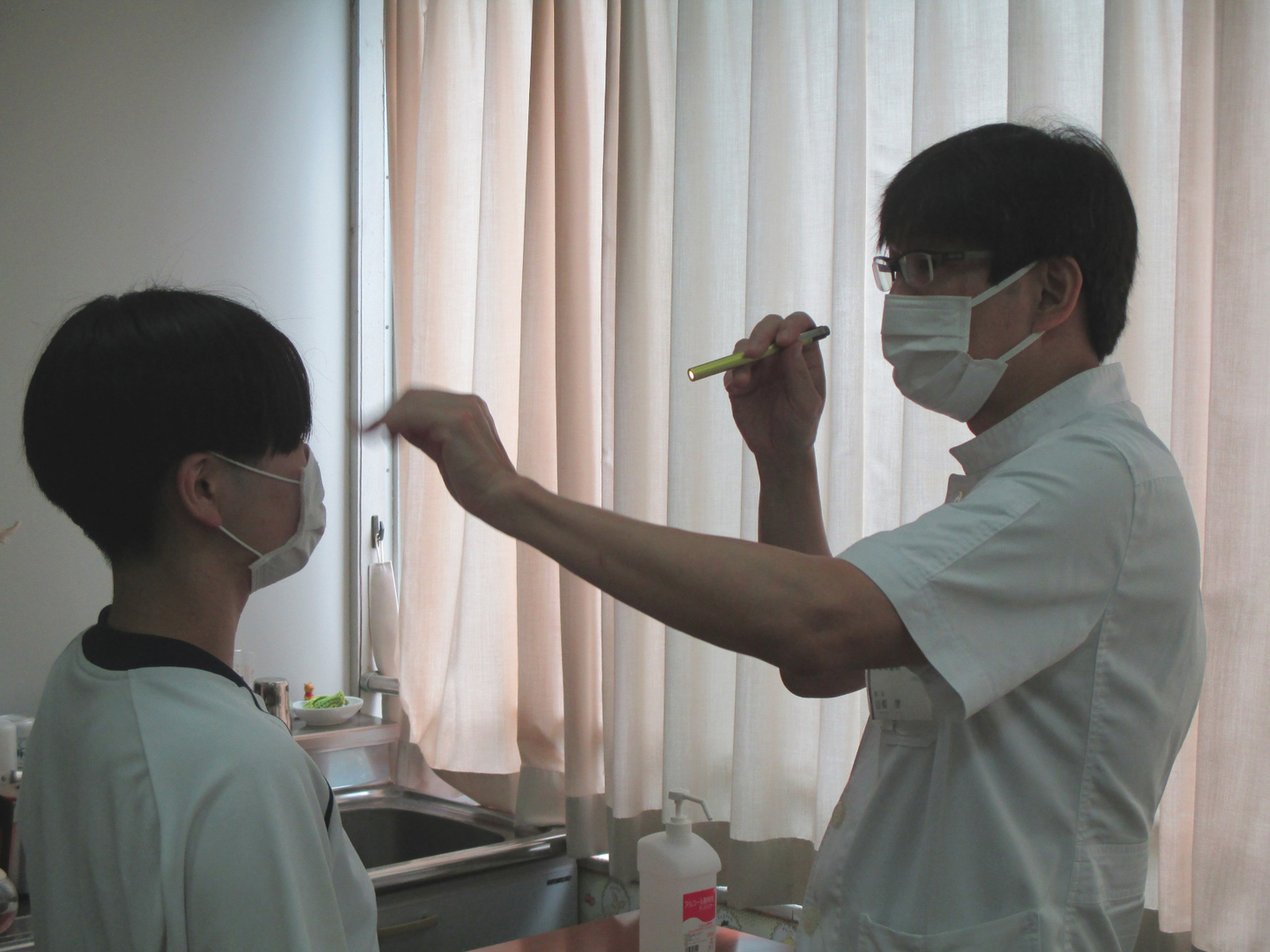 本日は、眼科検診の日です。眼科医の先生に来ていただき、眼の粘膜や角膜の異常、感染症、斜視などがないかを検査しました。生徒の健康状態を判断する大切な検査の一つです。もし、異常があれば眼科の受診を勧めます。