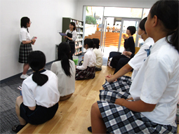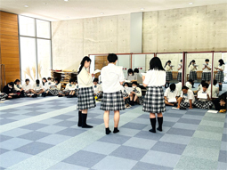 毎週水曜日は中等部では個性輝きの授業があります。中等部へ行ってみると、玄関ホールに2年生が集まって練習していました。今年は「AMIGO~宇宙へ~」というミュージカルで、台本の本読みをしていました。