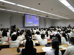 今年度第1回のオープンスクールが開催されました。お天気にも恵まれ多くのご家族に来校いただきました。写真は理科の実験授業の様子です。画面には入りきっていませんが、廊下に補助椅子を出して見学していただいています。授業体験のあとは、高等部見学ツアーや学校説明、制服ファッションショー、クラブ体験もあります。山陽女学園中等部をより身近に感じていただける1日になれば幸いです。